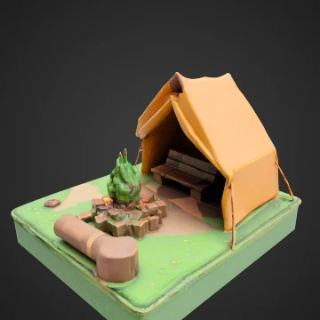 Bu cazibədar piksel sənəti dioraması canlı piksel meşəsində yerləşən rahat bir düşərgə səhnəsini təqdim edir. Oyunlarınıza və ya digər yaradıcı layihələrinizə unikal və nostaljik bir mühit əlavə etmək üçün ideal vasitədir.